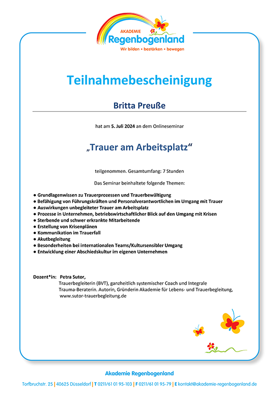Dozentin: Christine Kempkes (liebevoll trauern) in Kooperation mit der Akademie Regenbogenland Düsseldorf